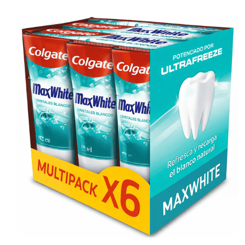 En definitiva, Colgate MaxFresh White Crystals Pasta de Dientes pack 6 x 100 ml combina limpieza eficaz, frescor intenso y una fórmula pensada para recuperar el blanco natural de los dientes. Por ello, se convierte en una alternativa ideal para quienes buscan pasta de dientes con frescor duradero, dentífrico con flúor y un cuidado diario completo para la higiene bucal.