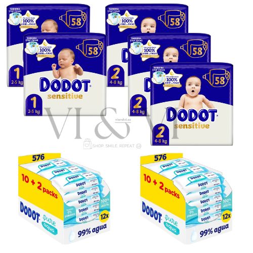 ¿Buscas una solución completa, cómoda y de calidad para los primeros meses de tu bebé? Este pack Dodot Sensitive para recién nacido lo tiene absolutamente todo para que no te falte de nada desde el primer día. Combinamos pañales de talla 1 y talla 2 con las toallitas más suaves y respetuosas para la piel de tu peque, y te lo enviamos a casa en 24h. Sin complicaciones, sin cargar peso y con la confianza de estar usando una de las opciones más valoradas por madres y padres.