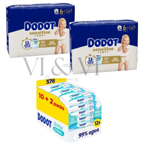 Este pack de pañales Dodot Sensitive Talla 6 y toallitas Aqua Pure es ideal para quienes buscan una solución práctica, completa y respetuosa con la piel. Reúne dos productos esenciales en una sola compra, lo que ahorra tiempo, evita imprevistos y ofrece la tranquilidad de tener siempre a mano lo necesario para el cuidado diario de tu peque.