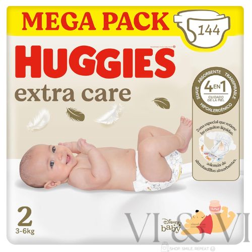 Huggies Extra Care Talla 2 (3-6 kg) Pack Ahorro 144 Pañales ofrece la máxima suavidad y protección para los bebés que crecen y se mueven más cada día. Este formato ahorro es perfecto para los primeros meses, cuando los cambios de pañal son frecuentes y la piel necesita un cuidado constante.