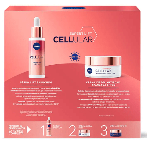 El estuche NIVEA Cellular Expert Lift con Bakuchiol es una opción práctica tanto para uso personal como para regalo. Reúne dos productos esenciales en una presentación cuidada, facilitando el acceso a una rutina completa sin necesidad de comprar los productos por separado.