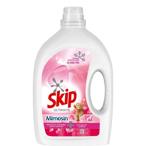 Cada botella ofrece 33 lavados llenos de eficacia y frescor, proporcionando una excelente relación entre rendimiento y calidad. La sinergia entre Skip y Mimosín garantiza un resultado superior que deja la ropa impecable, suave al tacto y con un perfume inolvidable.